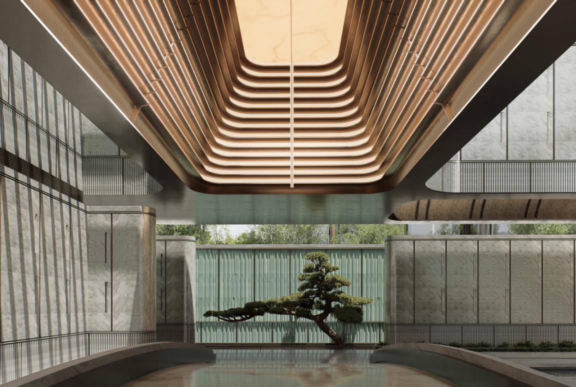 最初,是建筑和园林与山的“深度对话”。建筑以“白云流韵”的线条呼应云山灵感,园林以“引山入园”为中枢理念,将白云山的“云、林、泉、石”当然元素,通过当代运筹帷幄转译为“一轴四幕九境”的东方意境。让居者的归家动线,从看山的旁不雅,疗养为入画的体验。
