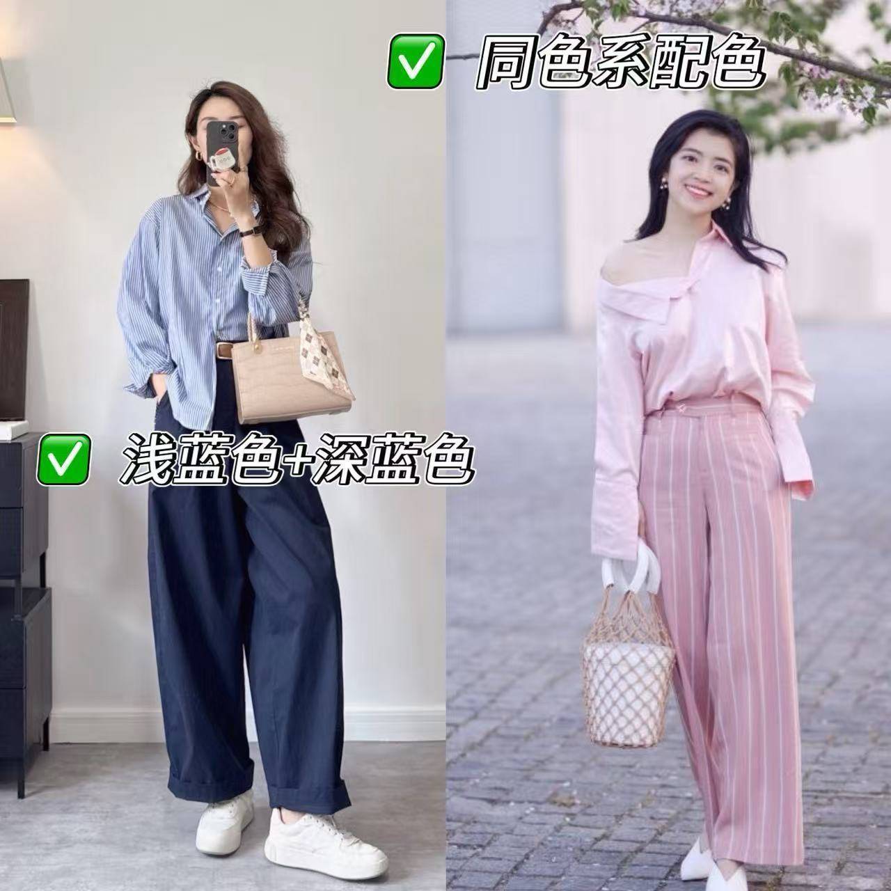 比如:浅蓝衬衫配深蓝裤子,浅粉色衬衫配粉色裤子,全体调解又有档次感。好多会穿的东谈主相等擅长这个,看起来很高档,其实极少皆不难。