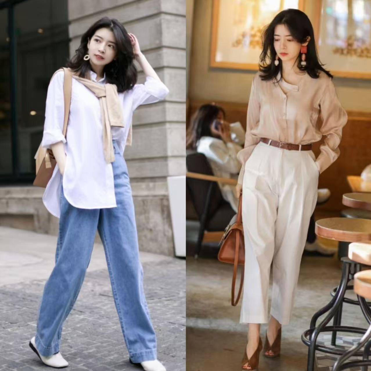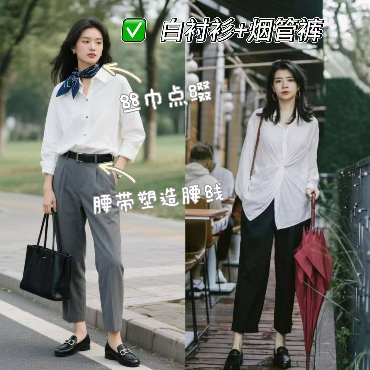 看前锋博主的白衬衫皆选拔有垂坠感但不软塌的姿首,穿起来相等有型。灰色大致玄色的九分萝卜裤配白衬衫再也安妥不外了,浮现脚踝,视觉上能显高三五厘米。配饰上加一条丝带,再戴腰带进行腰线的塑造,闲暇又有质感。这沉静对个子不高的姐妹相等友好,照穿外出系数会被夸面子显瘦。