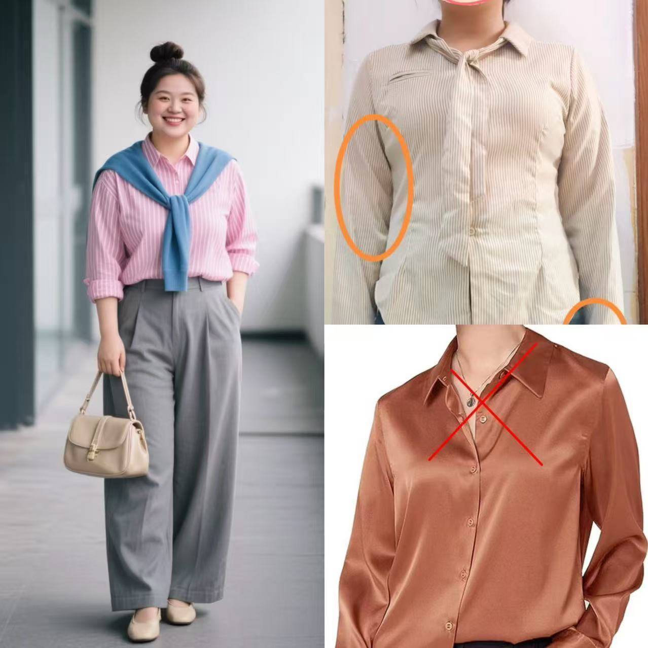 我有一件真丝素皱缎的衬衫,摸着相等快意,但穿上身就贴着肉,哪儿肉多显哪儿。自后才知谈,微胖躯壳要选有骨架感的面料,比如重磅双皱真丝、天丝大致厚弹力缎。这些面料有垂感,能拉长体态,又不会贴在身上流露舛误。
