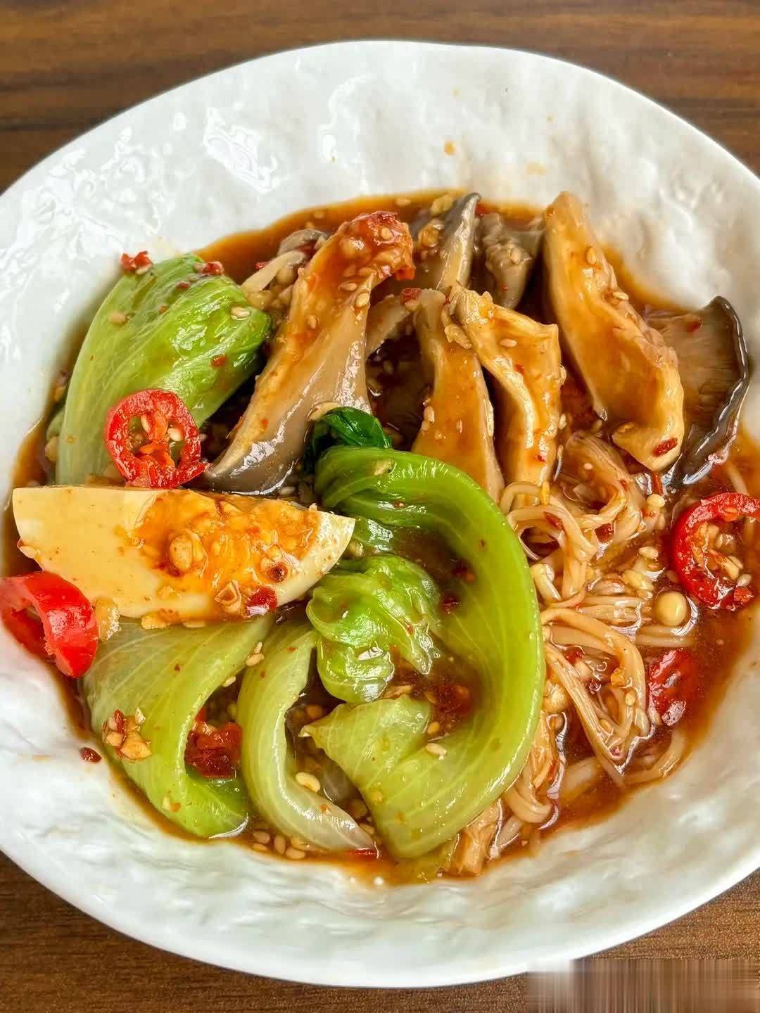 3. 加1勺生抽、极少盐调味,炒匀即可出锅。成果:平菇钾含量是香蕉的12倍,金针菇达18倍!双菌搭配,促进肌肉减轻,缓解腿脚酸软;膳食纤维还能加快肝脏代谢毒素[1]。