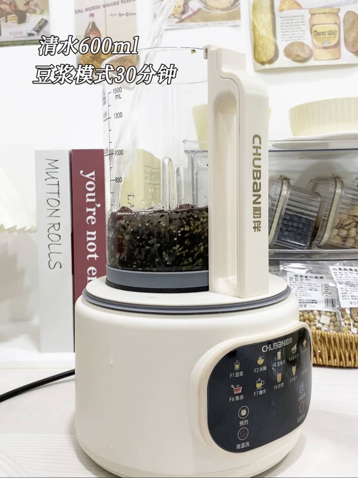 2. 通盘食材洗净,放入破壁机,加800毫升净水,采选豆乳花样;